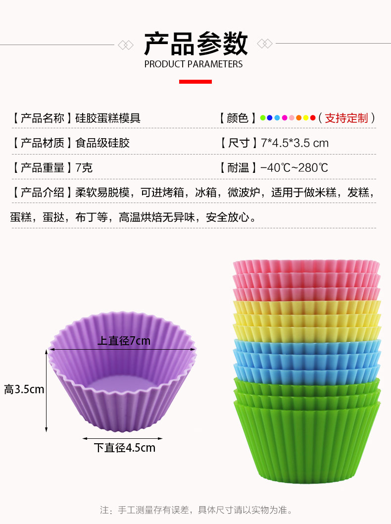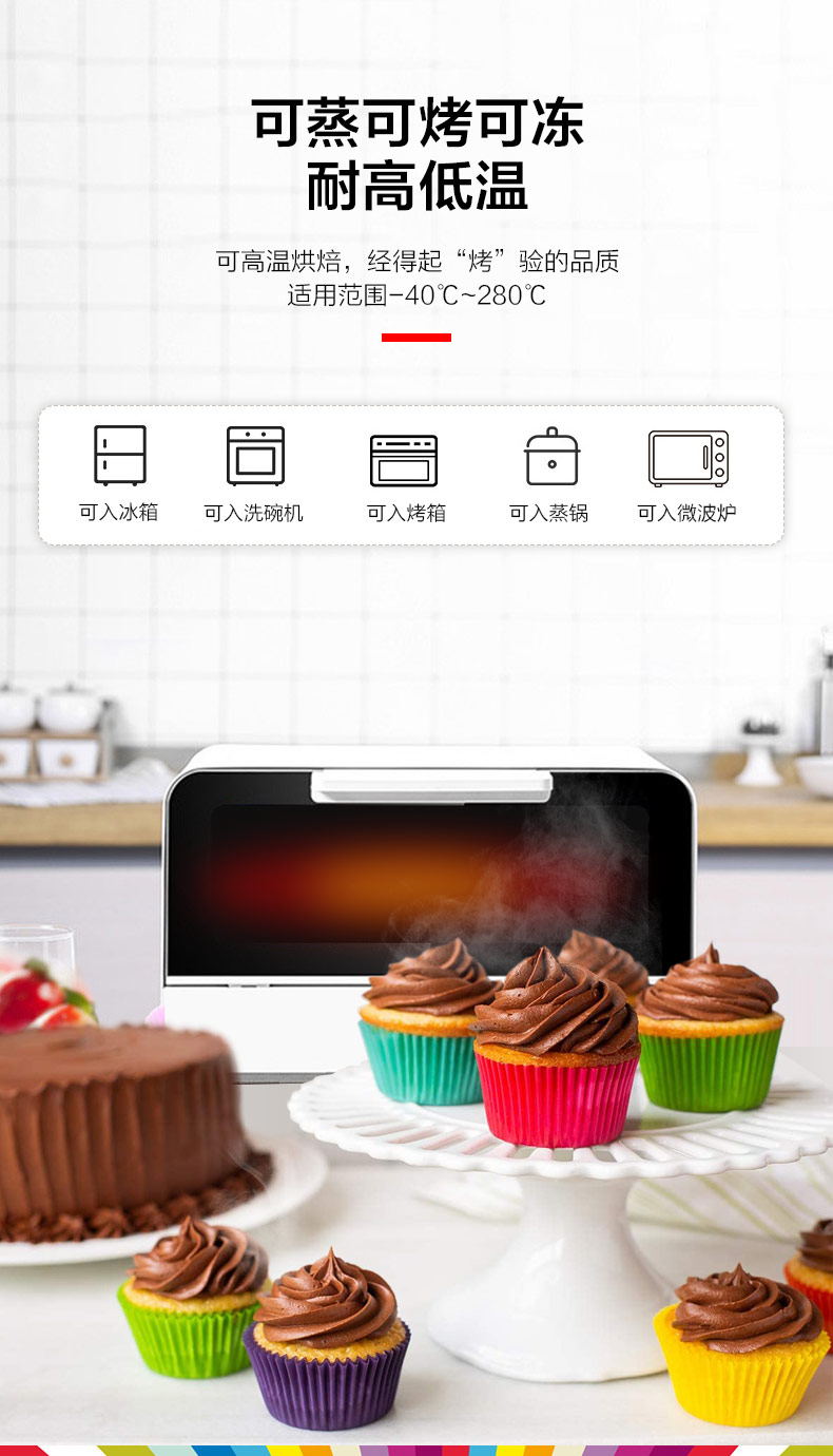 【產(chǎn)品介紹】柔軟易脫模,可進(jìn)烤箱,冰箱,微波爐,適用于做米糕,發(fā)糕,蛋糕,蛋撻,布丁等,高溫烘焙無(wú)異味,安全放心。
