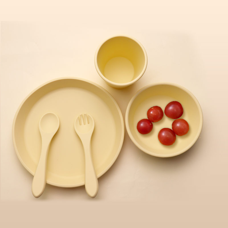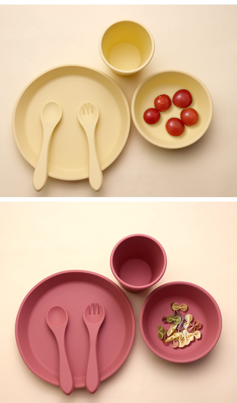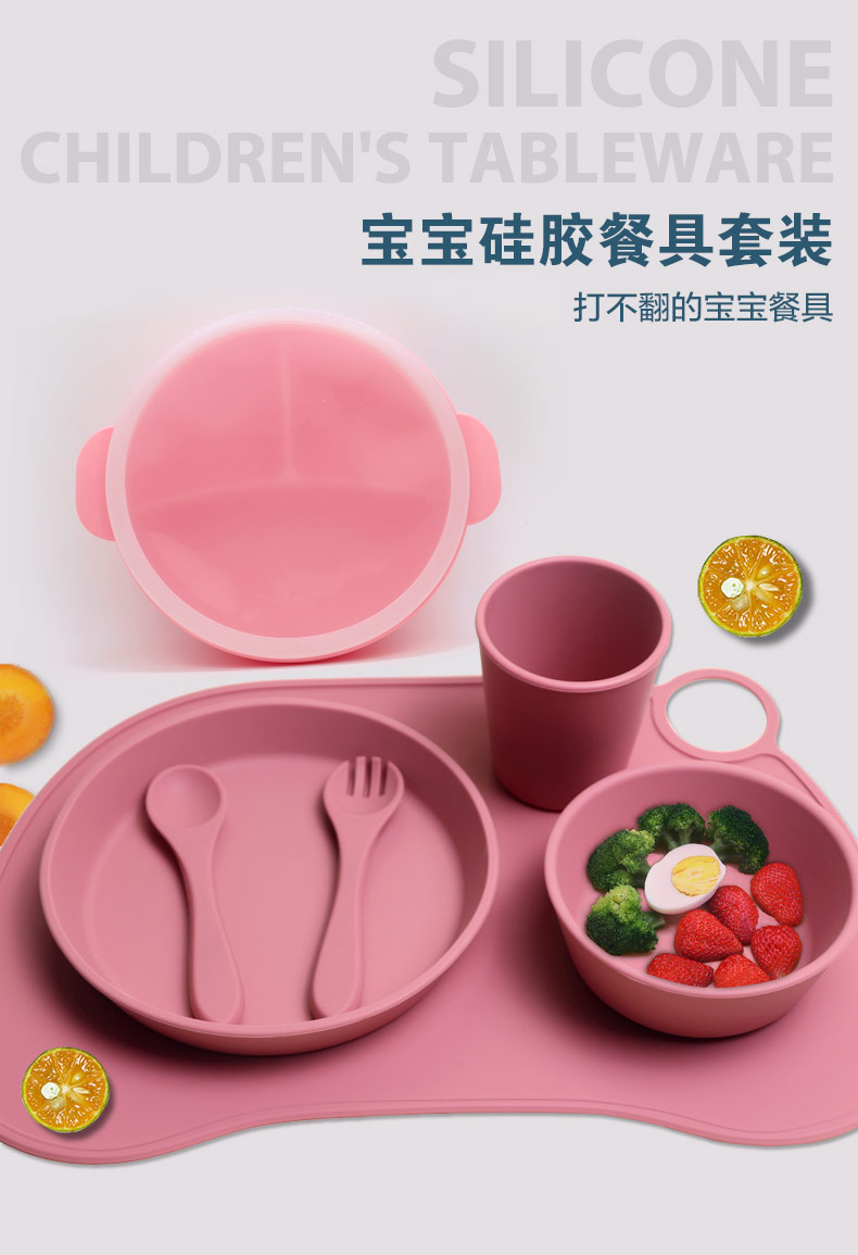 批發(fā)食品級(jí)硅膠兒童餐具寶寶喂食硅膠餐盤碗杯子餐墊 套裝