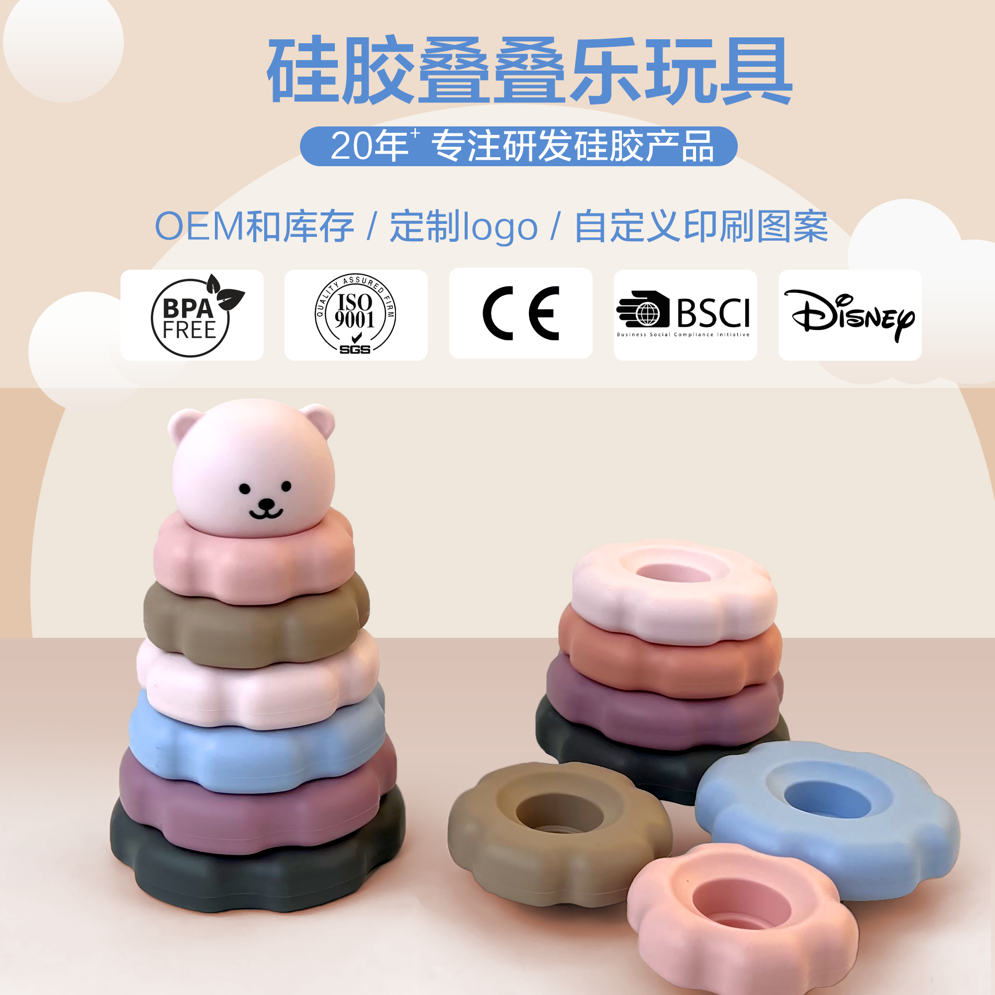 3-6歲寶寶益智硅膠疊疊樂六瓣花早教益智玩具硅膠積木