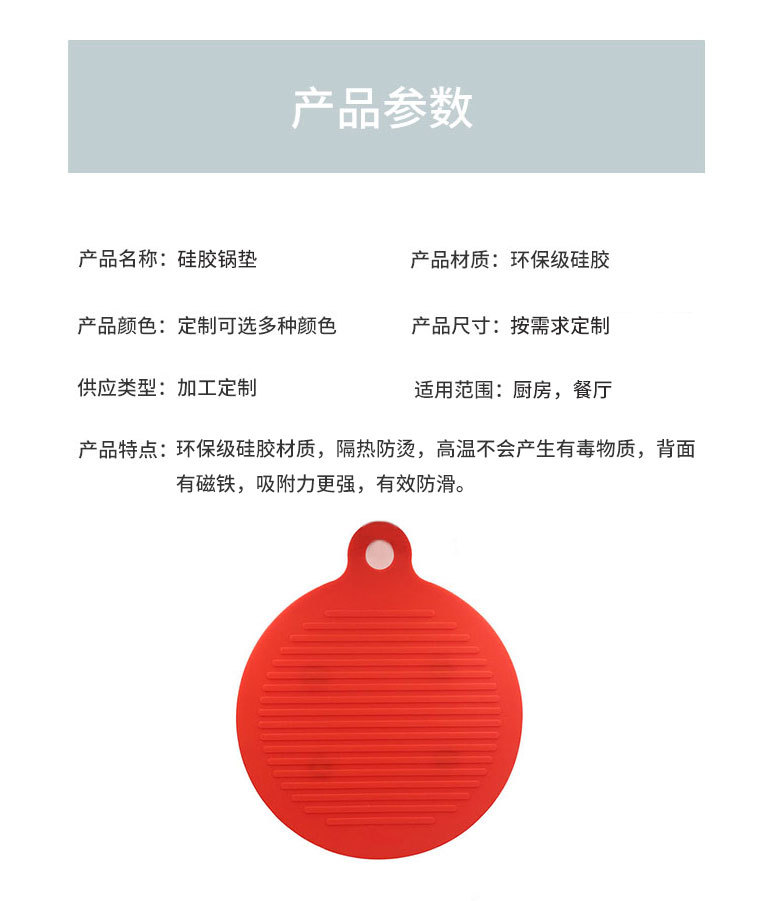 您的位置:首頁 > 產(chǎn)品中心 > 硅膠廚具用品 > 餐墊 > 硅膠餐墊定制,帶磁鐵硅膠隔熱鍋墊