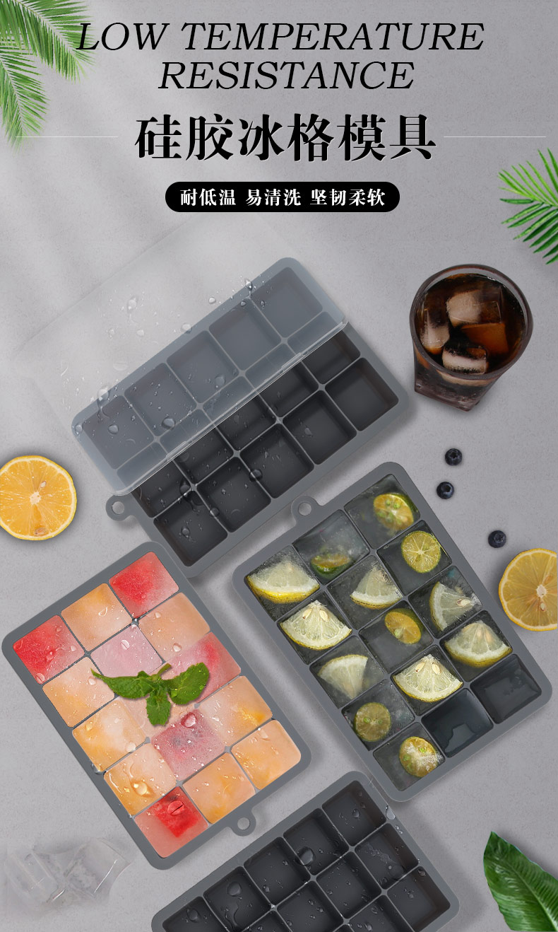 硅膠冰格15格 帶蓋家用方形制冰盒