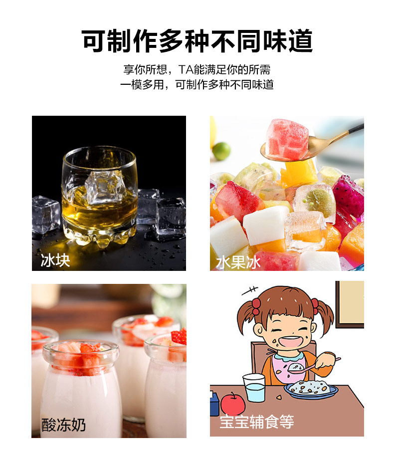 用 途:制冰塊 、雪糕 、餅干 、布丁、蛋糕、慕司、果凍等