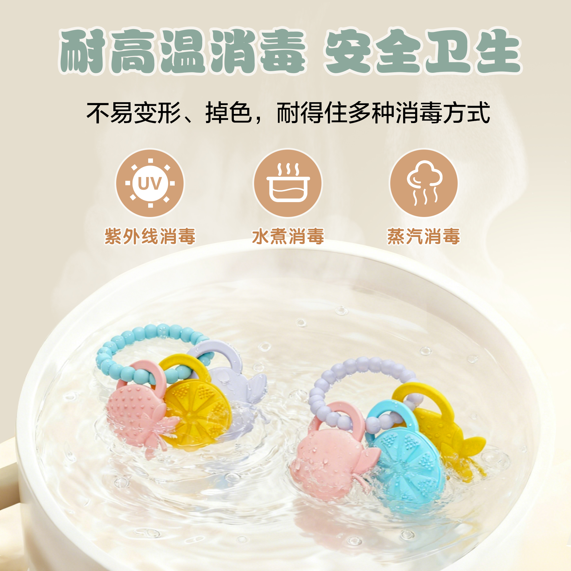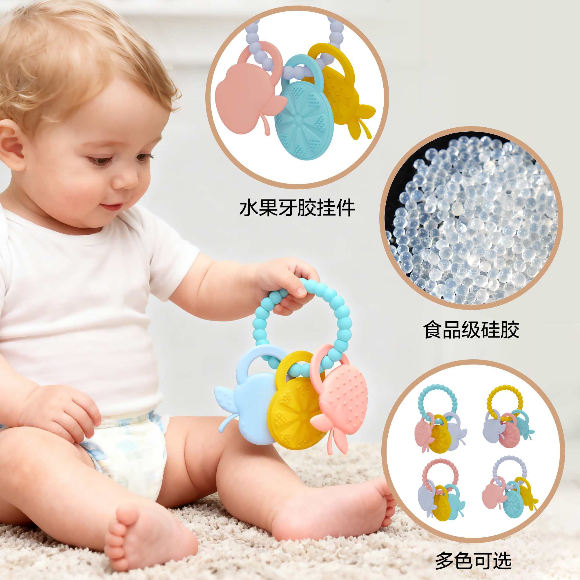 亞馬遜新生嬰兒硅膠牙膠防吃手圓環(huán)食品級(jí)可握咬玩具手環(huán)母嬰牙膠